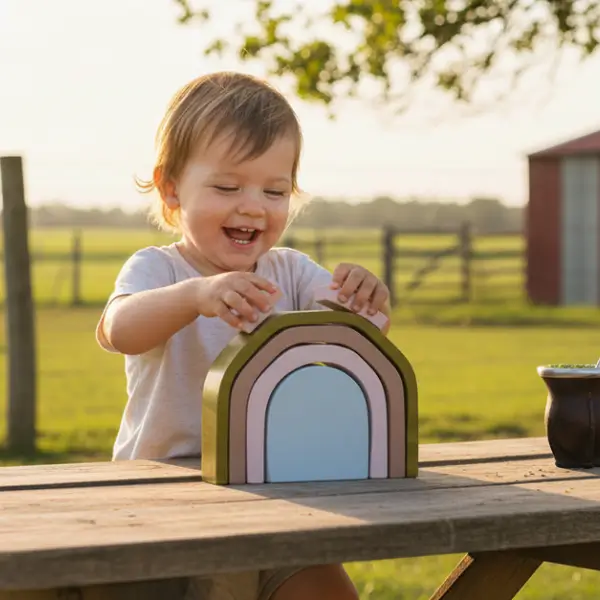 El Arcoíris 4 Piezas Roma es un juguete apilable de inspiración Montessori que combina diseño, creatividad y exploración sensorial.