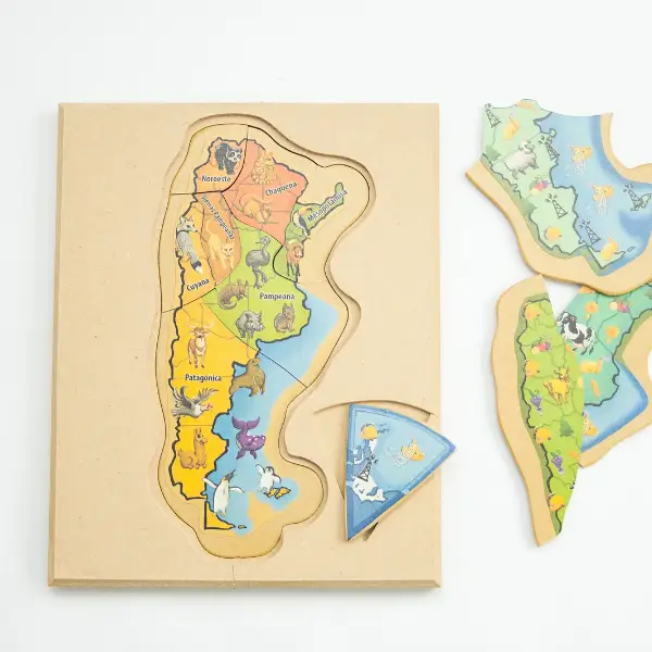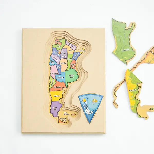 Este Rompecabezas único de madera es una herramienta educativa integral para descubrir Argentina en profundidad.